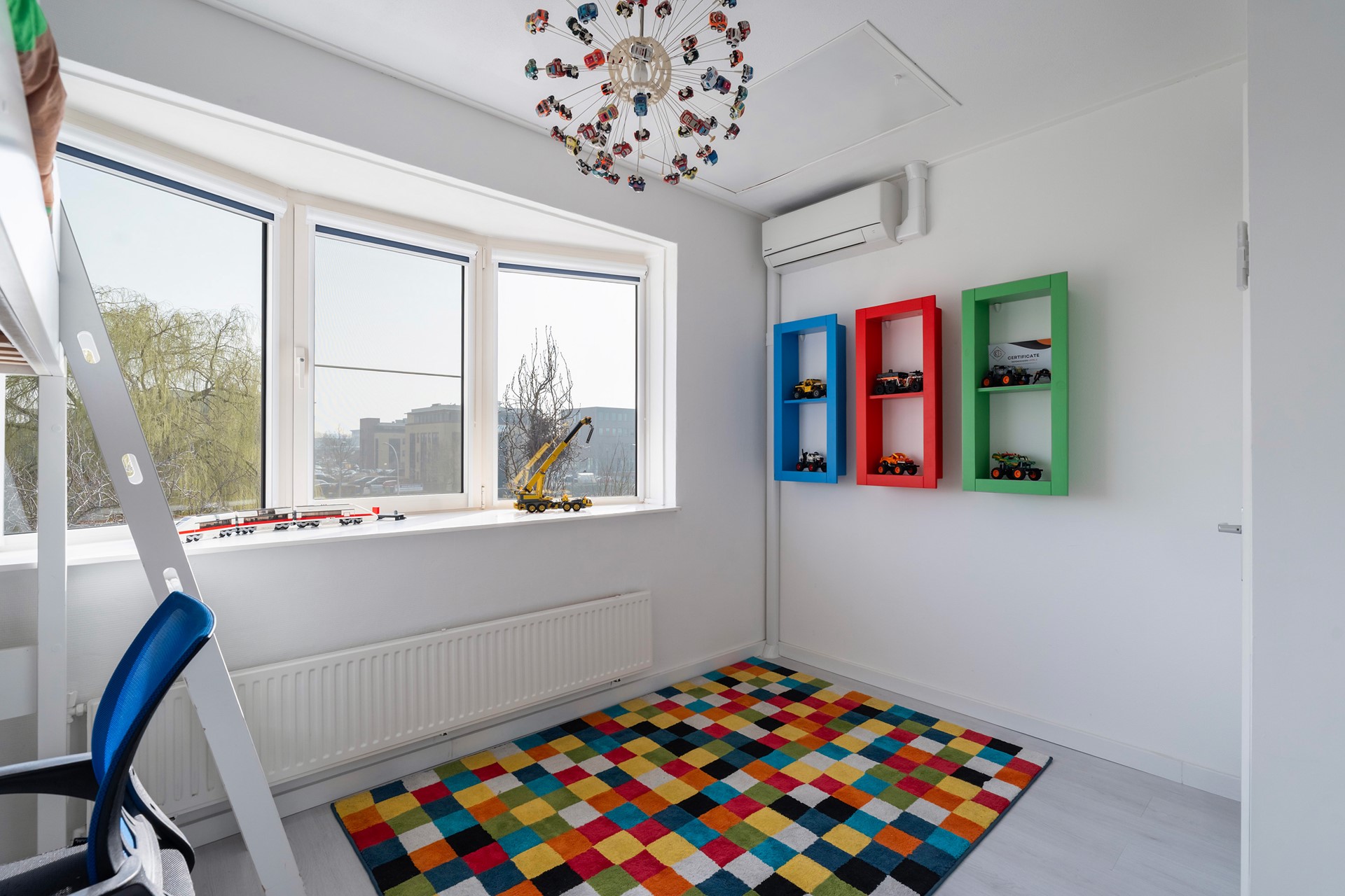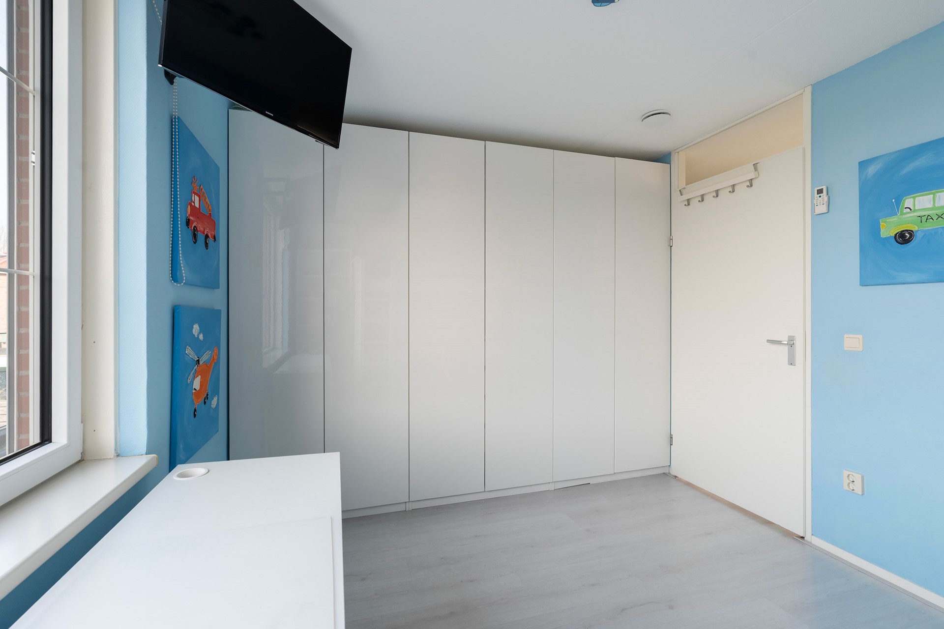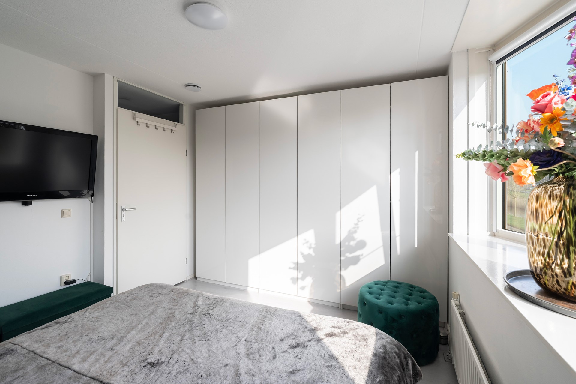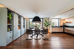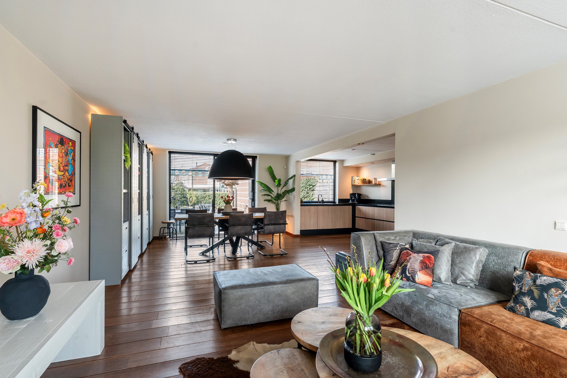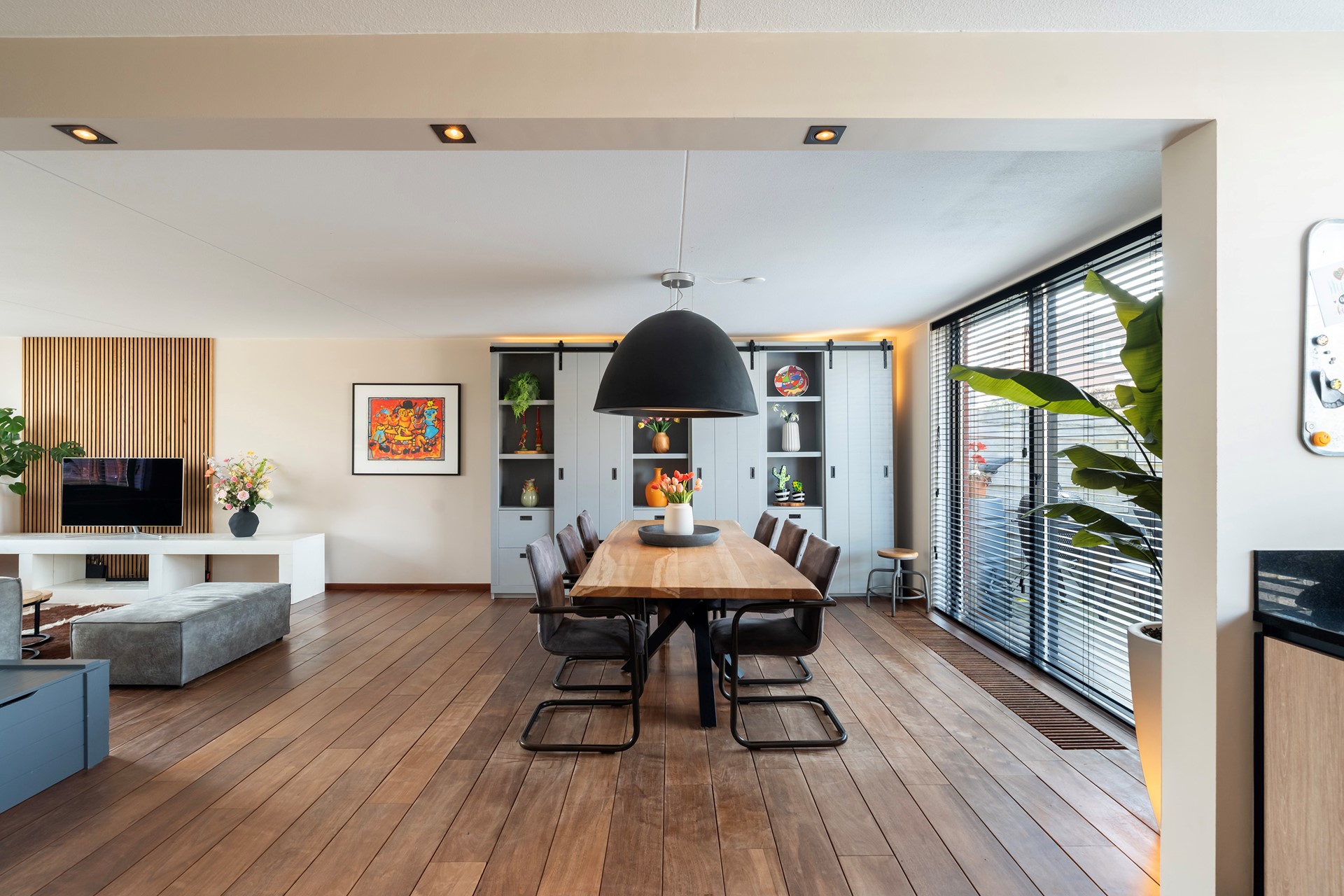 De royale doorzonwoonkamer met moderne binnendeuren is heerlijk licht dankzij de grote raampartijen en de sfeervolle erker aan de voorzijde. Aan de uitgebouwde achterzijde biedt de schuifpui direct toegang tot de zonnige tuin. Deze woning biedt een bijzonder ruime leefomgeving.