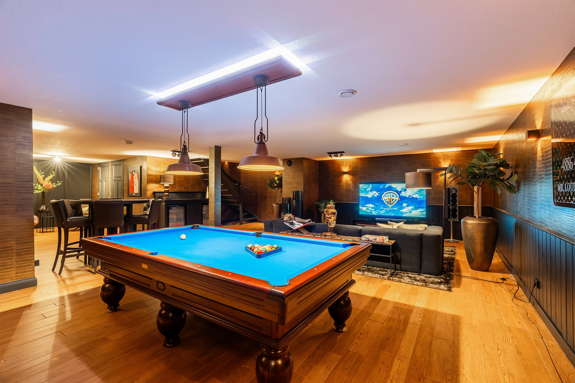 De basement van circa 100 m² is ingericht als vrijetijdsruimte met onder meer een home cinema en pantry met 2 koelkasten. Daarnaast zijn er twee extra kamers die uitstekend geschikt zijn als logeerkamer of bergruimte.
