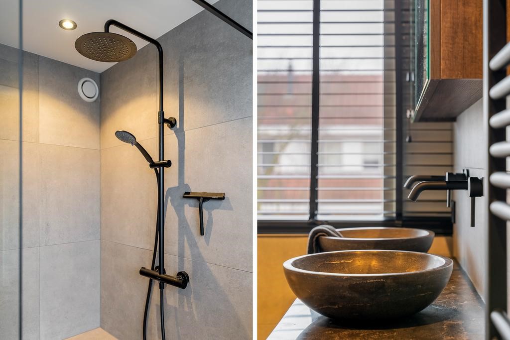 De badkamer (2024) is werkelijk een plaatje! De badkamer is geheel betegeld en voorzien van een wandcloset, inloopdouche met hand- en regendouche, dubbele wastafel met meubel, spiegelkast en designradiator. In het plafond bevinden zich diverse inbouwspots, wat voor een gezellige sfeer zorgt.