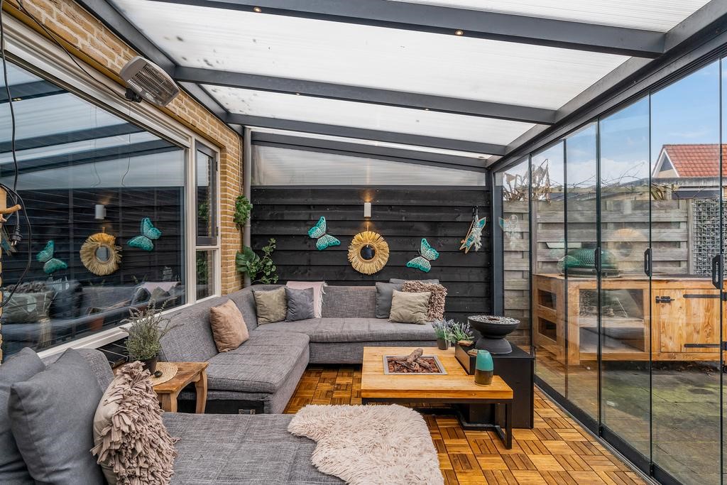 De tuin beschikt over een prachtige serre, welke volledig afsluitbaar is, waardoor u ook in de winter kunt genieten van de tuin. Verder is de tuin voorzien van sierbestrating en sierbeplanting. Ook bevindt zich achter in de tuin een stenenberging en een achterom.
