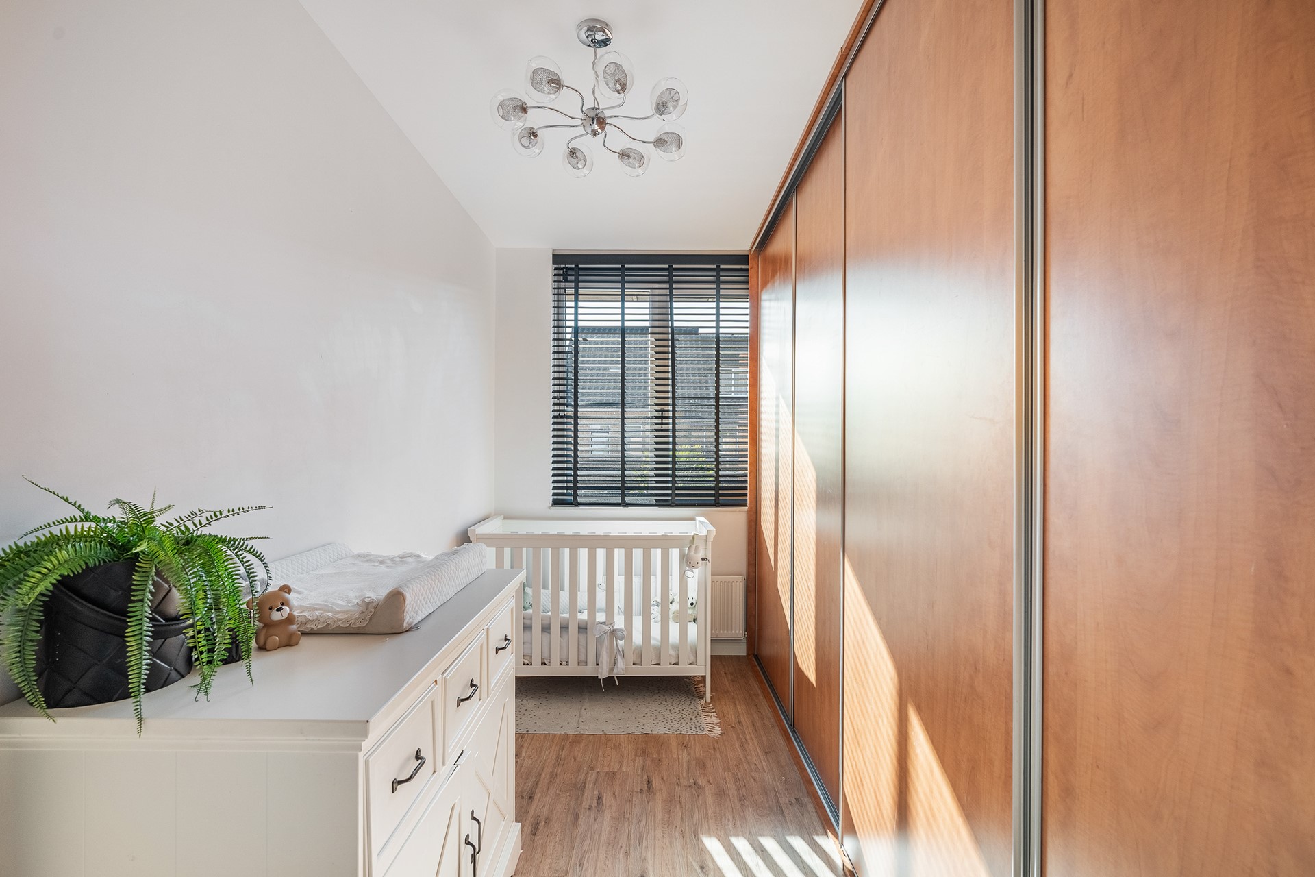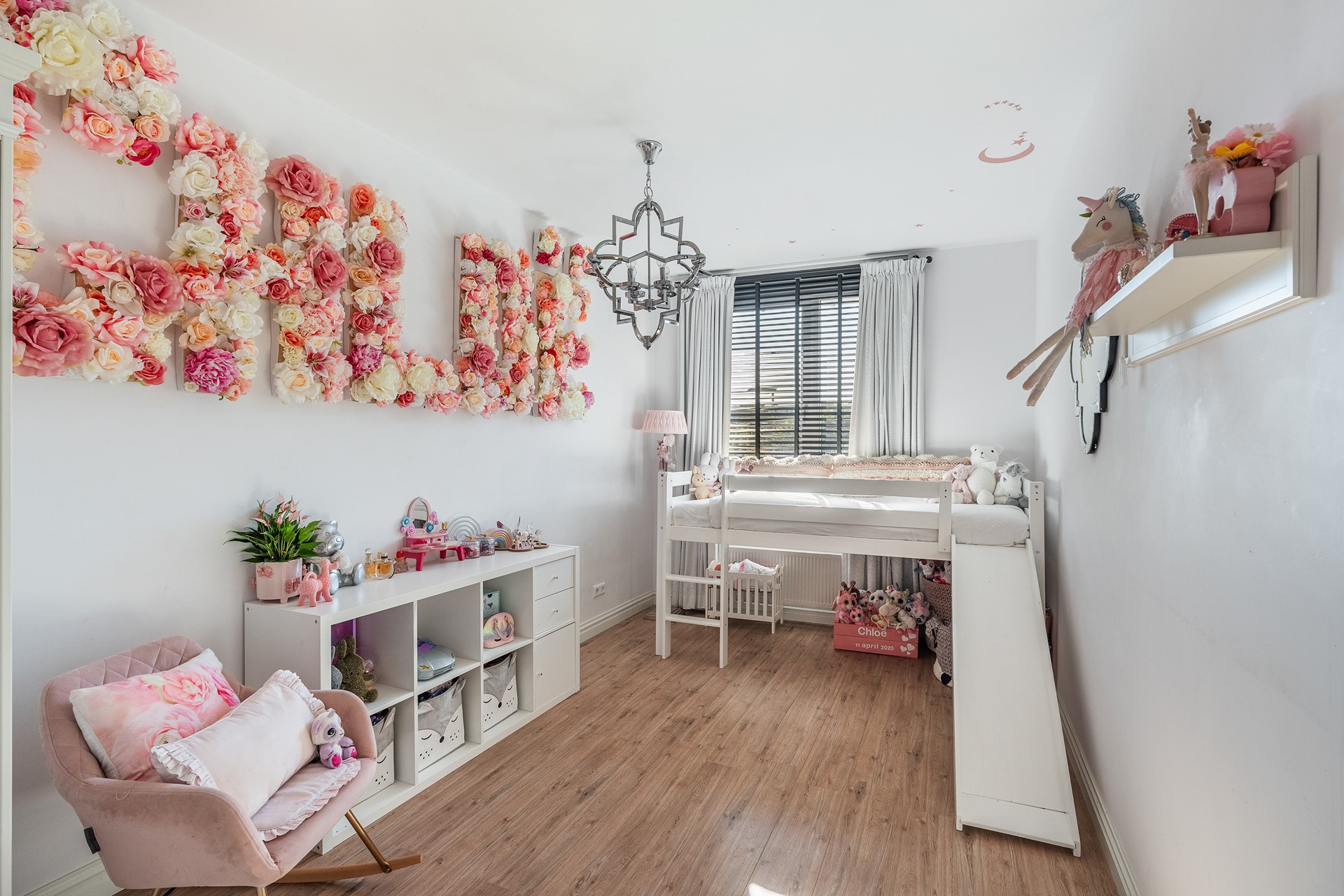 De eerste verdieping biedt drie ruime slaapkamers. Slaapkamer één bevindt zich aan de voorzijde en is ca. 12,5 m² groot. Aan de achterzijde liggen slaapkamer twee van ca. 14 m² en een derde slaapkamer met een schuifkastenwand van maar liefst ca. 4 meter breed, ideaal voor veel opbergruimte. De verdieping is voorzien van mooie laminaatvloeren en strak gestucte wanden, wat zorgt voor een frisse en moderne uitstraling.