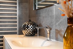 De luxe badkamer is geheel betegeld en beschikt over vloerverwarming, een wastafel met meubel, designradiator en inloopdouche, welke beschikt over een hand -en regendouche. In het plafond bevinden zich diverse inbouwspots, wat voor een gezellige sfeer zorgt. De badkamer is prachtig afgewerkt!
