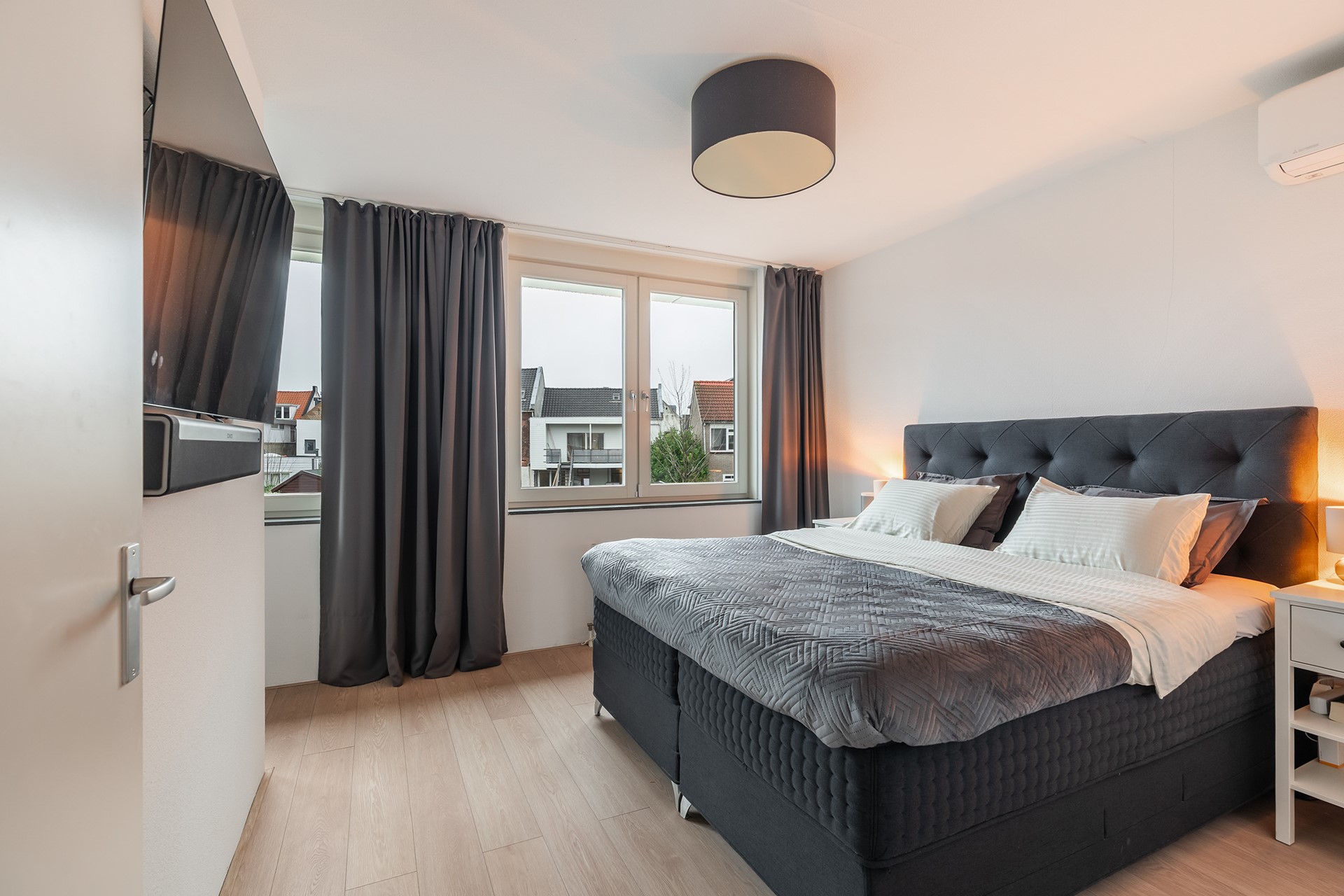De ruime hoofdslaapkamer aan de voorzijde beschikt over airconditioning en een eigen walk-in closet. Aan de achterzijde bevinden zich twee comfortabele slaapkamers. De verdieping is grotendeels afgewerkt met een mooie laminaatvloer; één kamer is voorzien van vloerbedekking.