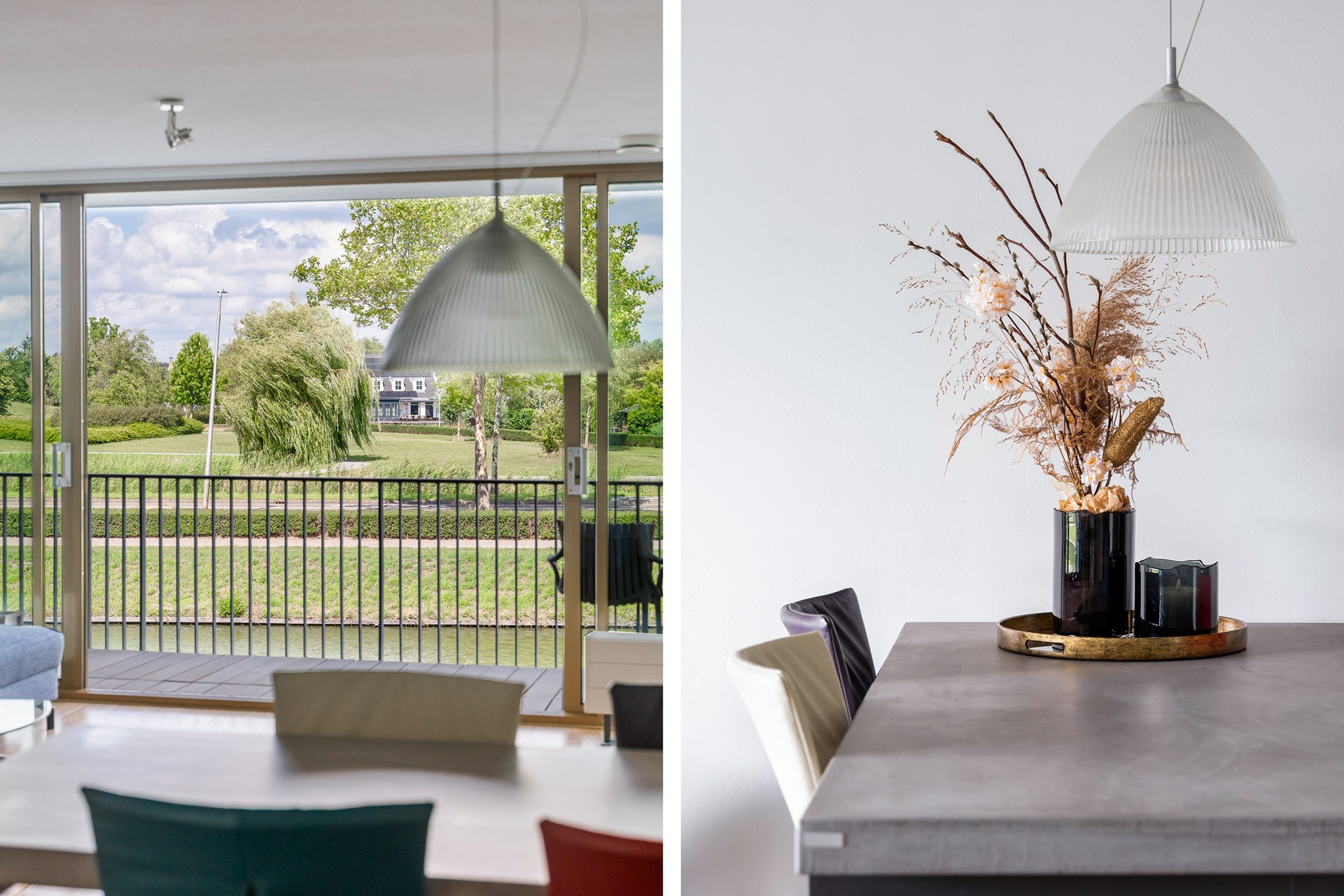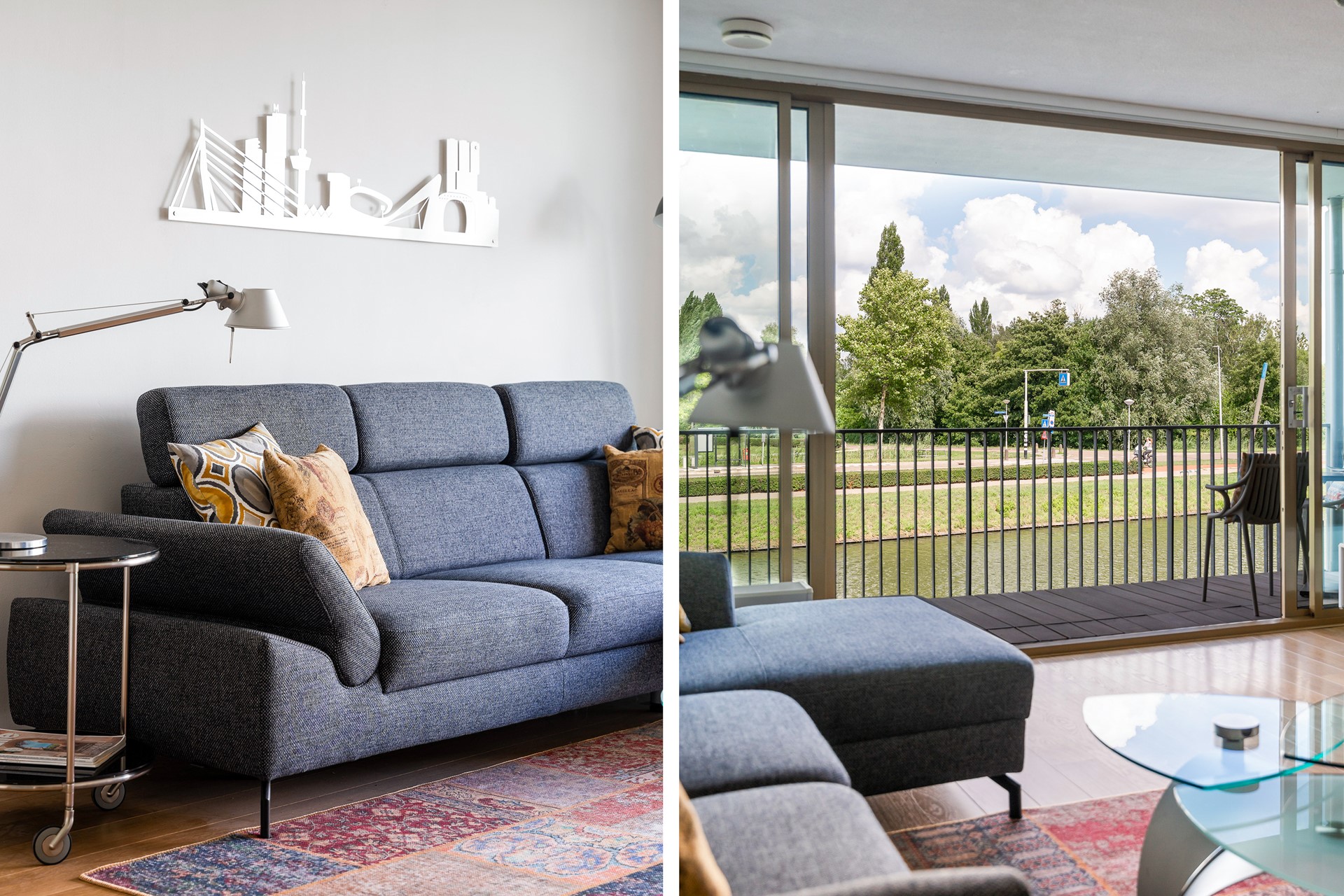 De woonkamer is absoluut het hart van deze woning: een royale, lichte ruimte , met een gevelbrede glazen pui en een prachtig uitzicht op het achtergelegen water en natuur. De woonkamer staat in directe verbinding met het zonnige balkonterras, bereikbaar via een schuifpui. Het terras is afgewerkt met hardhouten vloerdelen en vormt een heerlijke plek om te ontspannen.