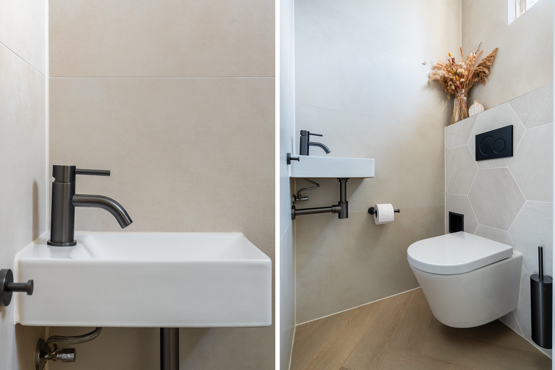 Via de verzorgde voortuin bereikt u de entree van de woning. In de hal bevinden zich de meterkast en een nette toiletruimte met vloerverwarming en fonteintje.