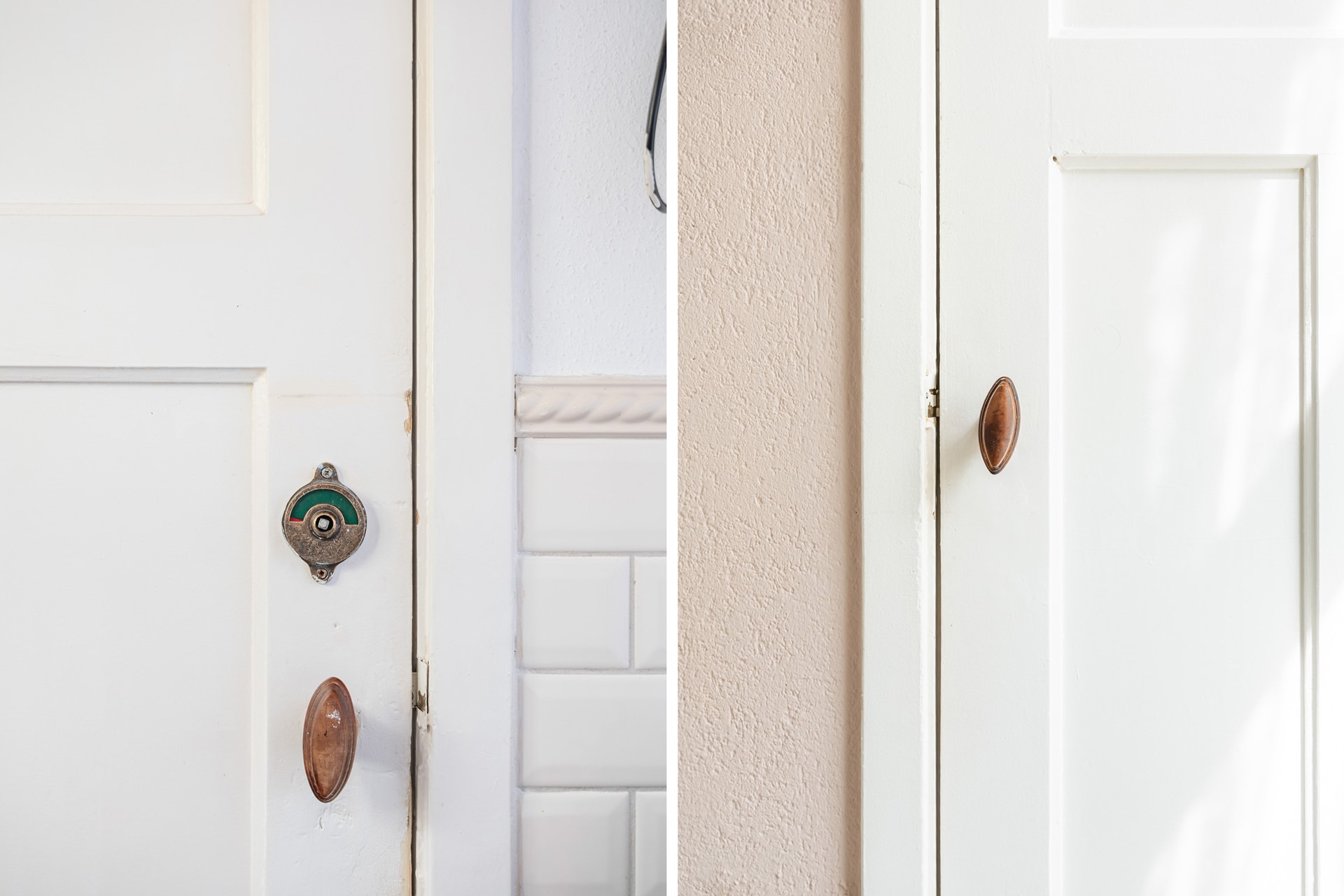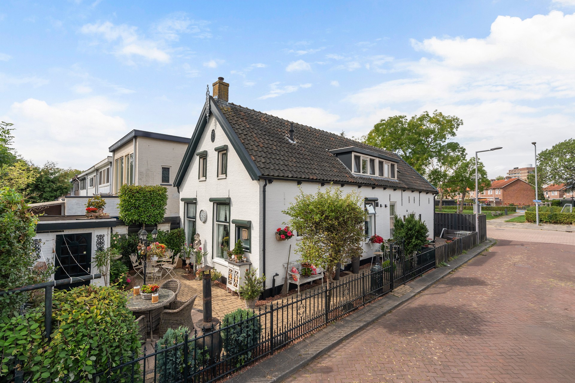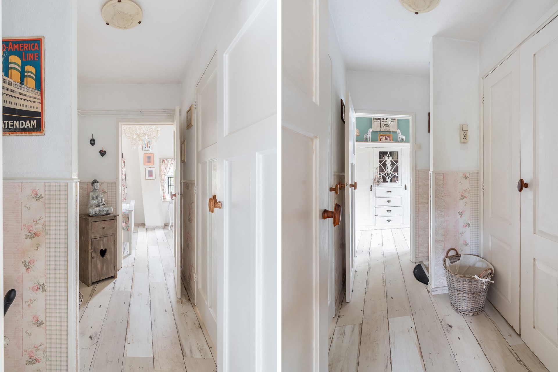 Via de gezellige voor- en zijtuin bereik je de entree van de woning. In de hal is ruimte voor een garderobe en vind je de trap naar boven, het toilet en de toegang tot de woonkamer. De hal is afgewerkt met sfeervolle Portugese tegeltjes op de vloer en half betegelde wanden. De toiletruimte is in dezelfde stijl uitgevoerd met Portugese en witte tegels en beschikt over een closet, verwarming en een raam voor natuurlijke ventilatie.