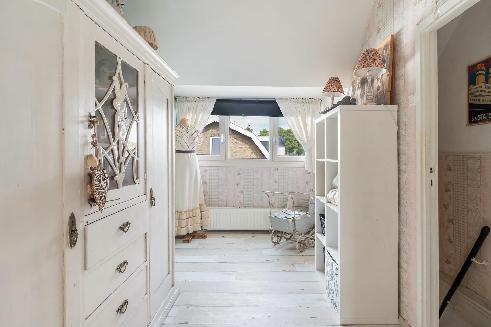 Tussen beide kamers in bevindt zich een derde slaapkamer, eveneens met een fijne dakkapel. Op de overloop is bovendien een technische ruimte met de opstelling van de cv-ketel te vinden.