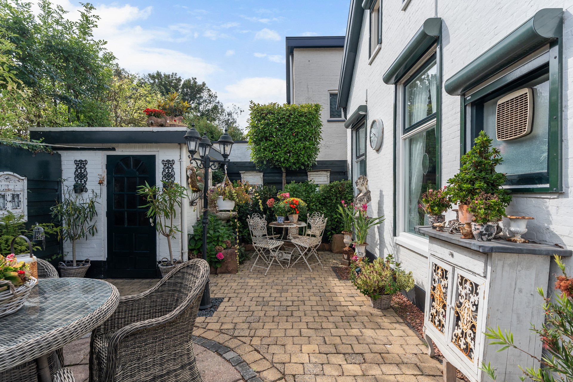 De tuin is bereikbaar via de voordeur. Aan de voorzijde ligt een gezellige voortuin die doorloopt naar de achter/zijtuin. De buitenruimte is sfeervol aangelegd met fraaie betegeling, sierbeplanting en verschillende zitjes, waardoor je altijd een fijne plek vindt om te ontspannen. De tuin ligt op het zuidoosten en biedt daarnaast toegang tot een stenen berging.