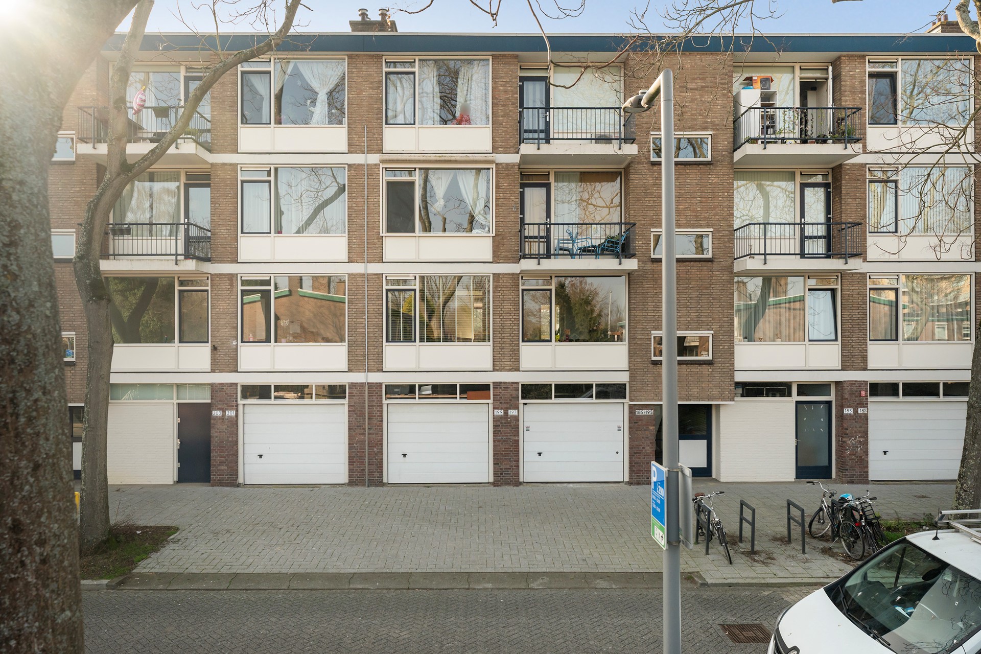 Via de straatzijde bereik je het nette portiek, waar zich het bellentableau en de brievenbussen bevinden. Vanuit hier heb je toegang tot het trappenhuis, dat leidt naar de woonverdiepingen en de praktische kelderbergingen.