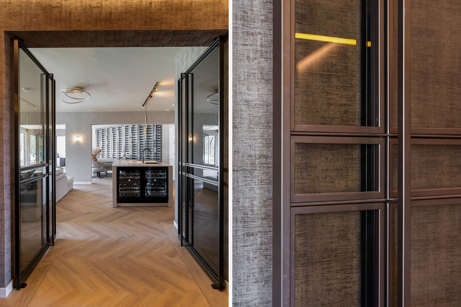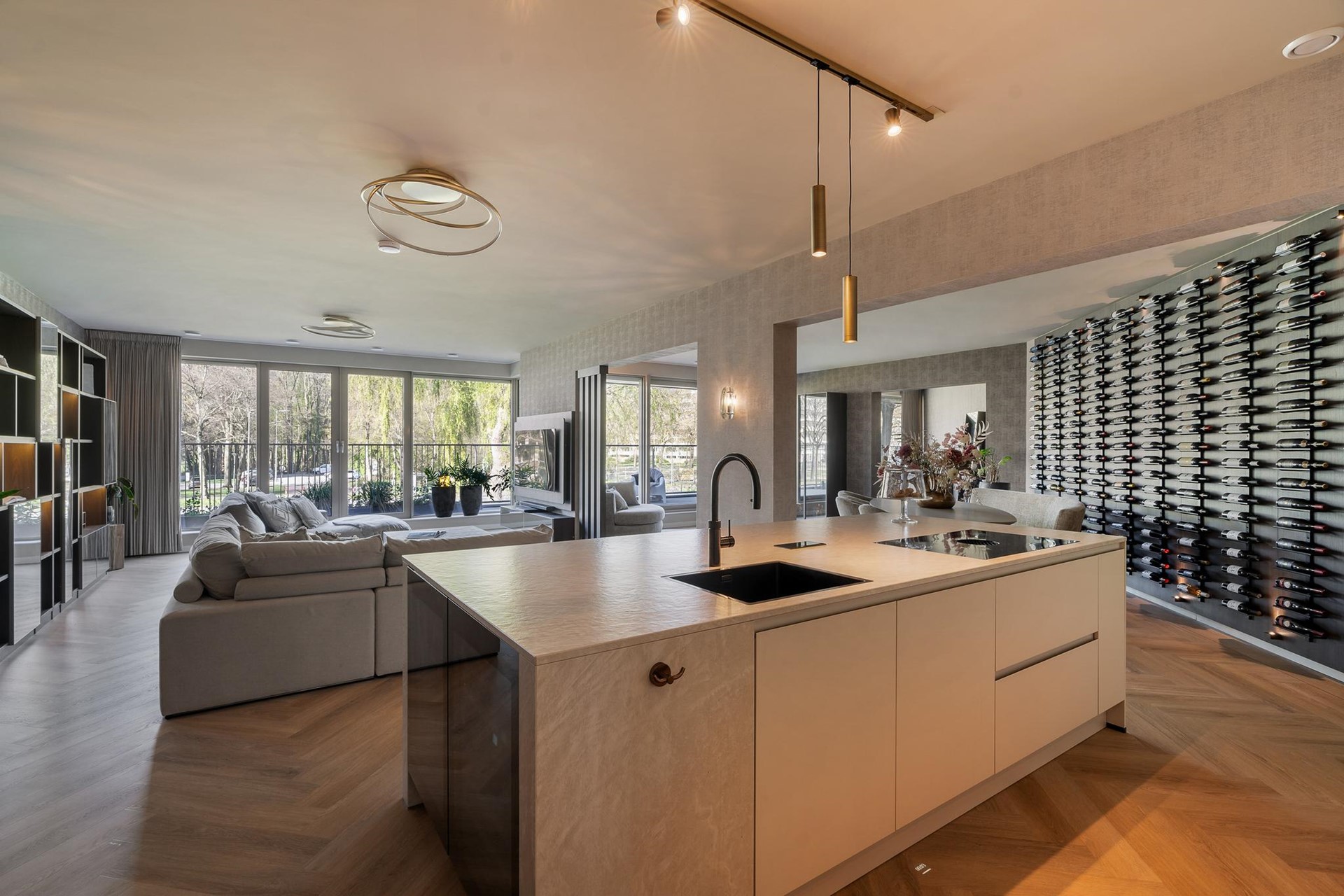 De indrukwekkende leefruimte, welke toegang krijgt door de prachtige dubbele taatsdeuren in brons, straalt licht en luxe uit, dankzij de royale raampartijen en hoge plafonds. De gehele woning is voorzien van vloerverwarming met slow heating en ook de optie vloerkoeling is aanwezig. Elk detail is met oog voor design en comfort gerealiseerd. Het prachtige en unieke houtwerk is voor deze woning speciaal op maat ontworpen en uitgevoerd door “Lazzoni”.