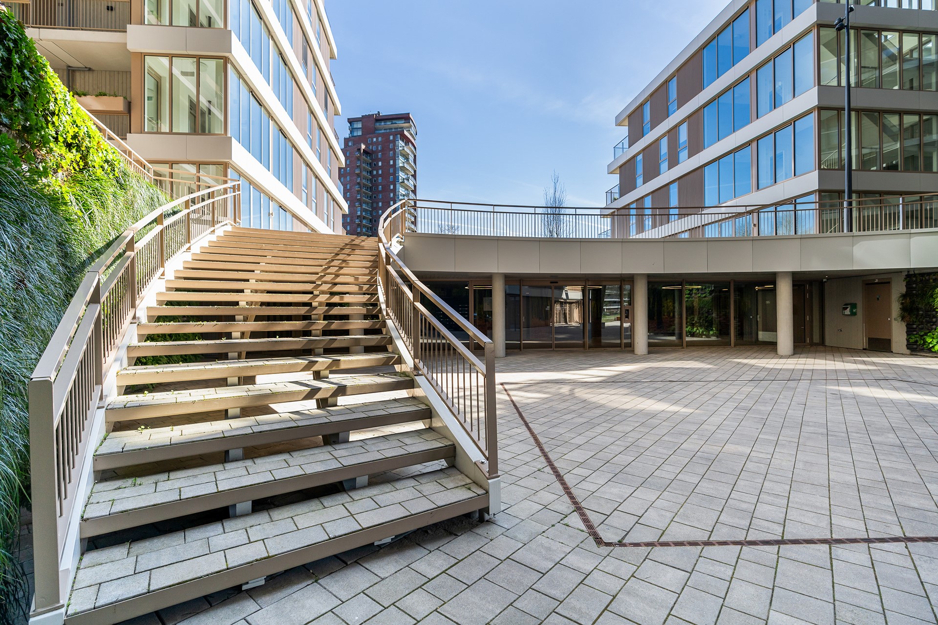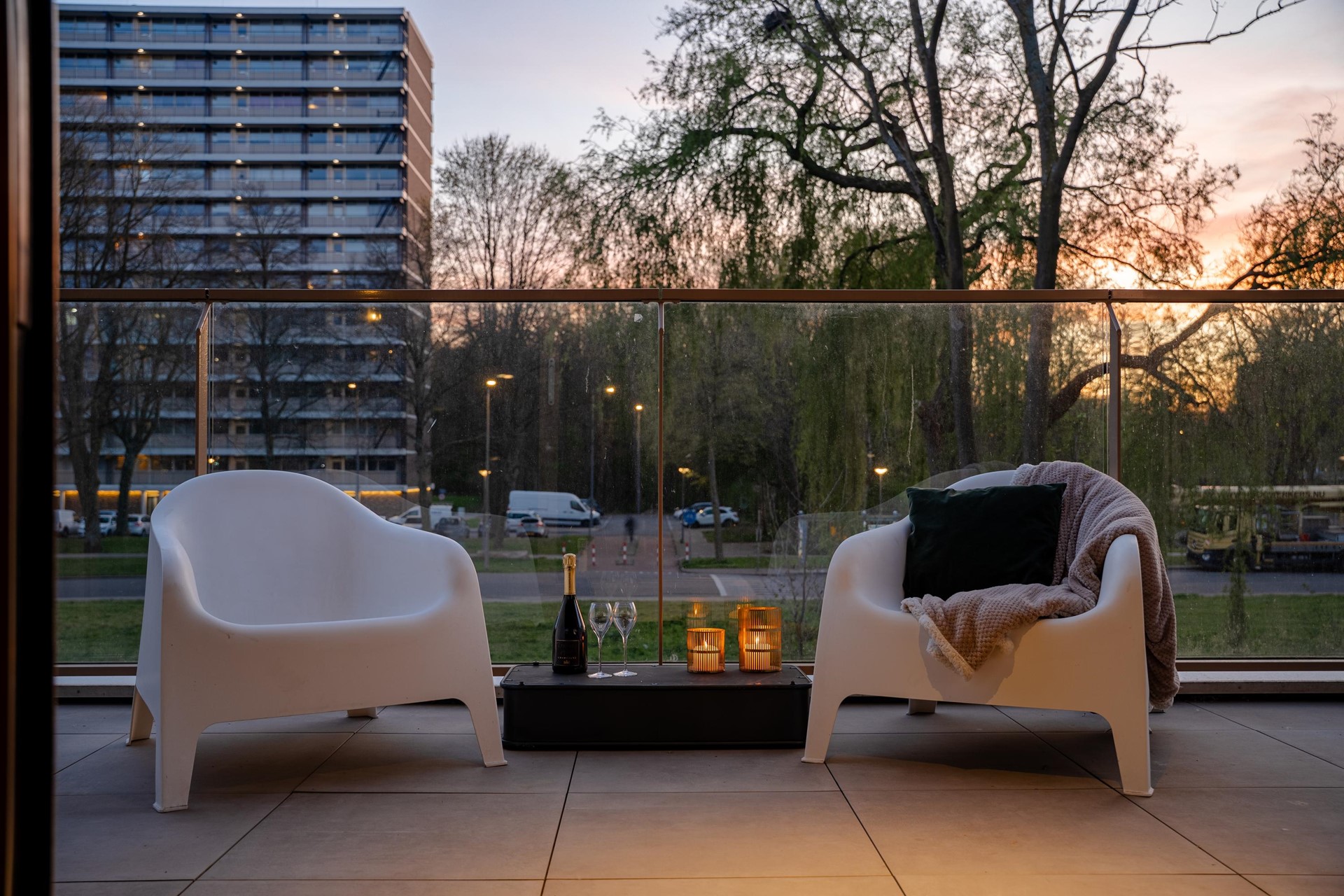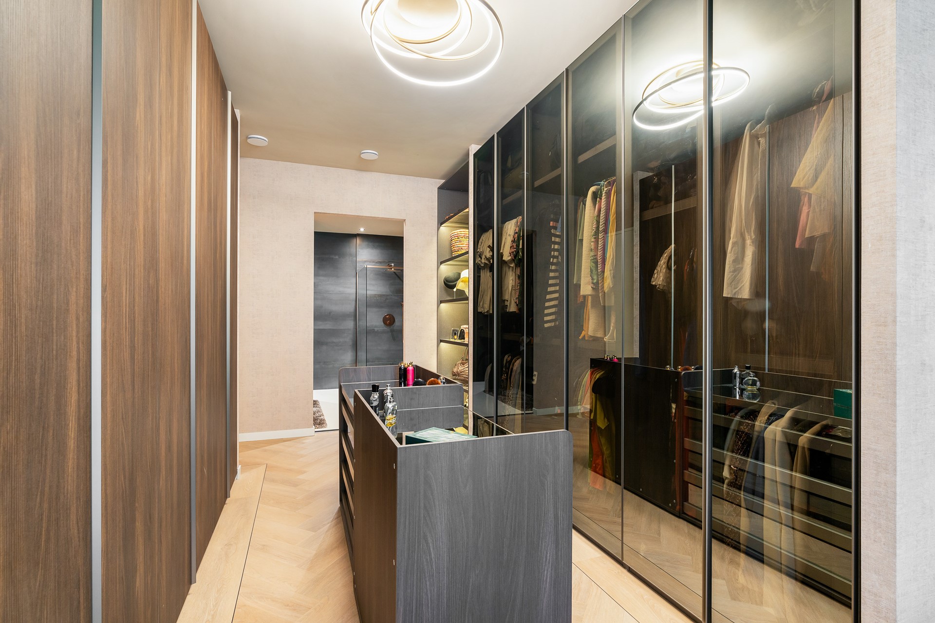 De royale master bedroom heeft toegang tot een eigen luxe badkamer voorzien van hoogwaardig sanitair. De kamer is een serene plek om te ontspannen, met een weids uitzicht en directe toegang tot het riante privéterras – uw eigen buitenruimte midden in de stad. Er staan twee prachtige op maat gemaakte kledingkasten met automatische verlichting en twee ladeblokken voor het opbergen van kleinere spulletjes. De plafondhoge open kast geeft ruimte aan prachtige designerstukken die gezien mogen worden!