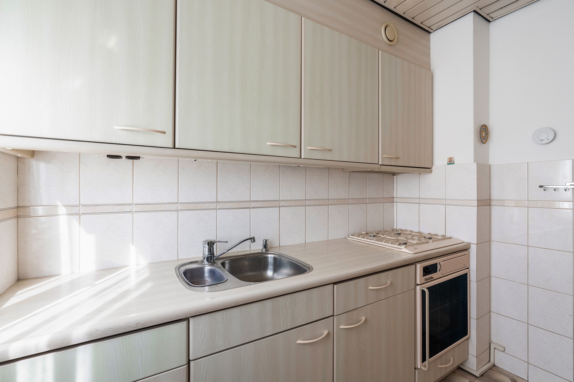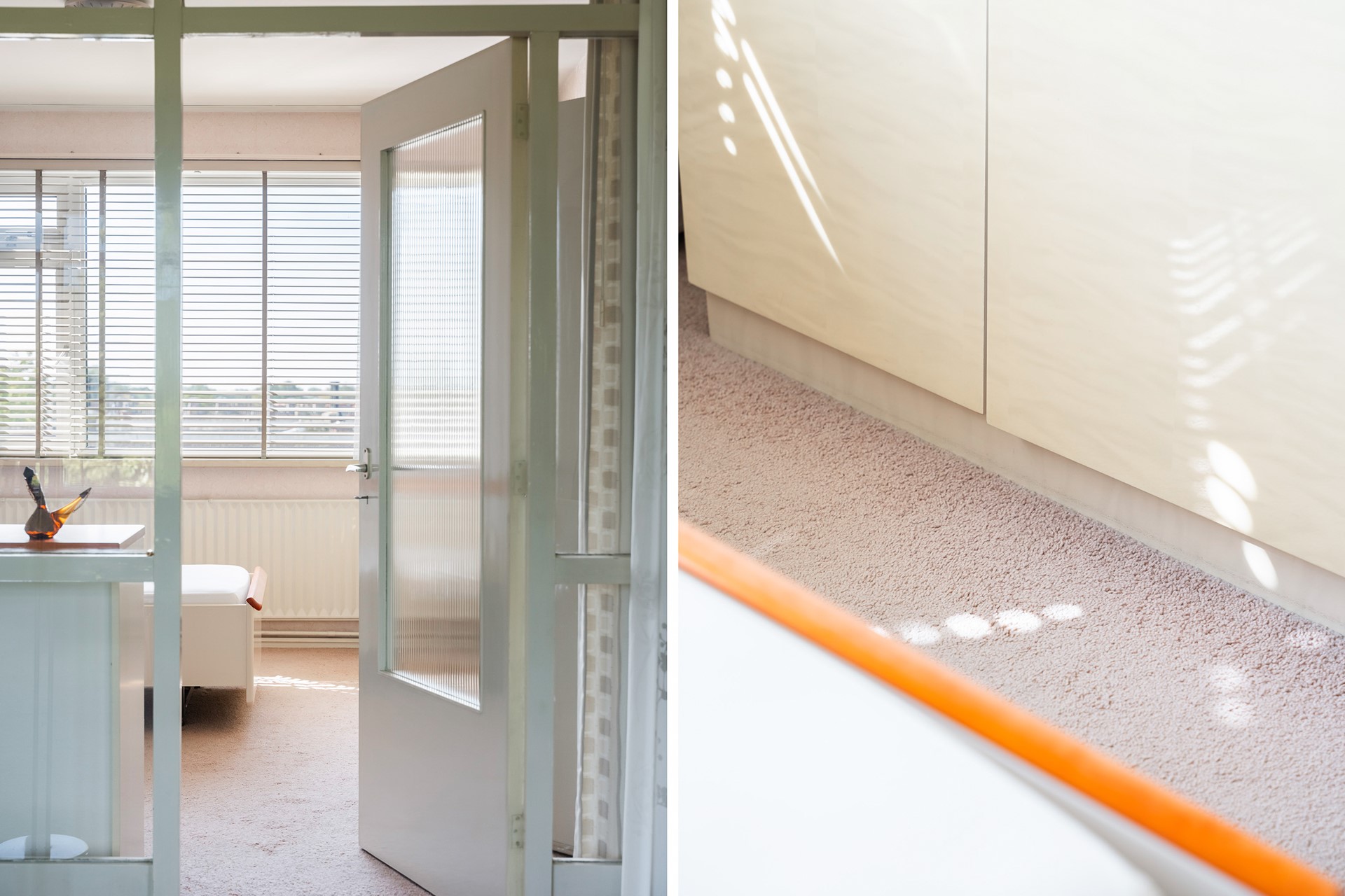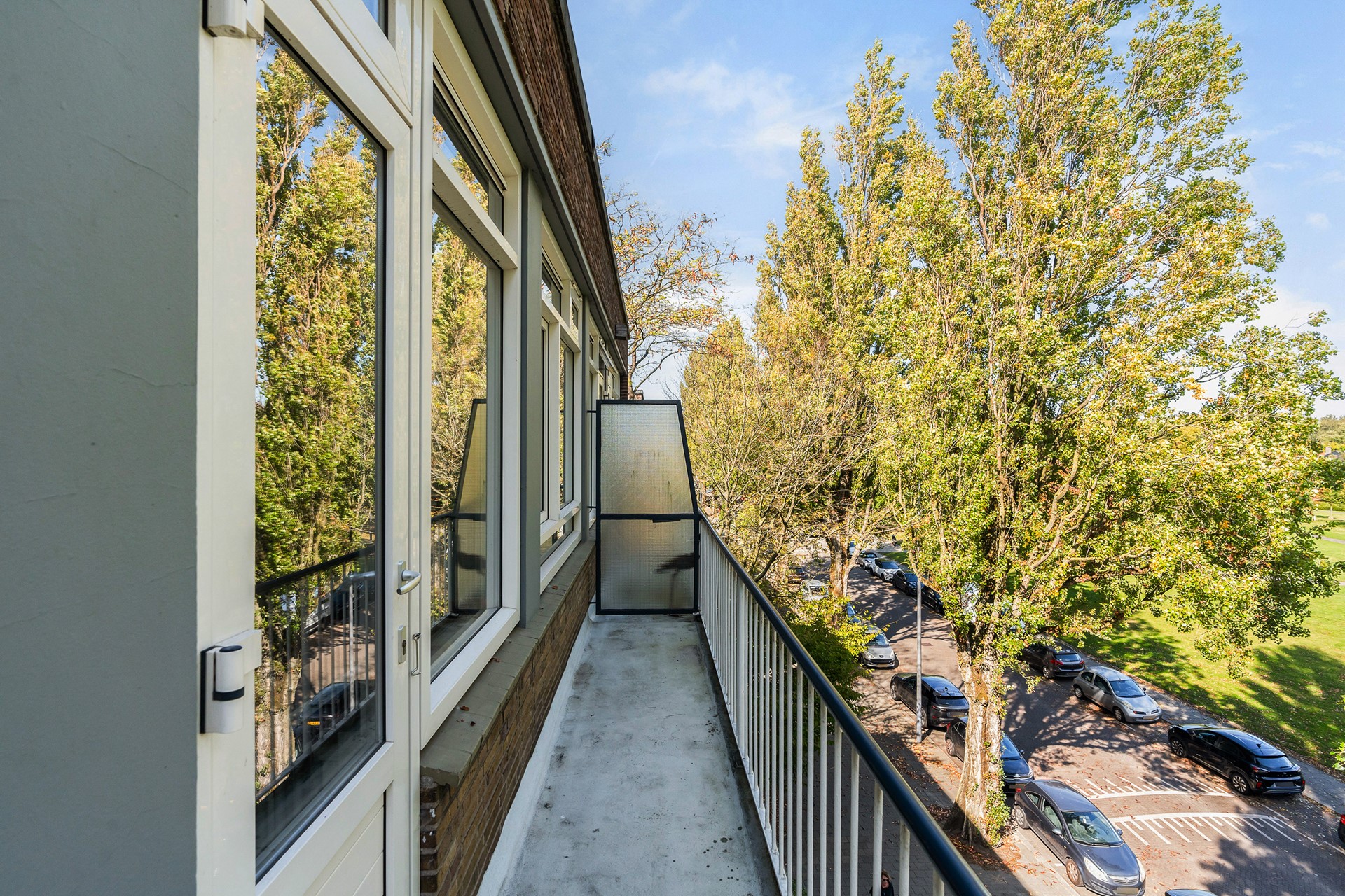 De woonkamer is uitgebroken en daardoor heerlijk ruim, met een vaste kast en maar liefst twee toegangen tot het balkon. Hier kun je genieten van de zon en het uitzicht over de groene omgeving.
